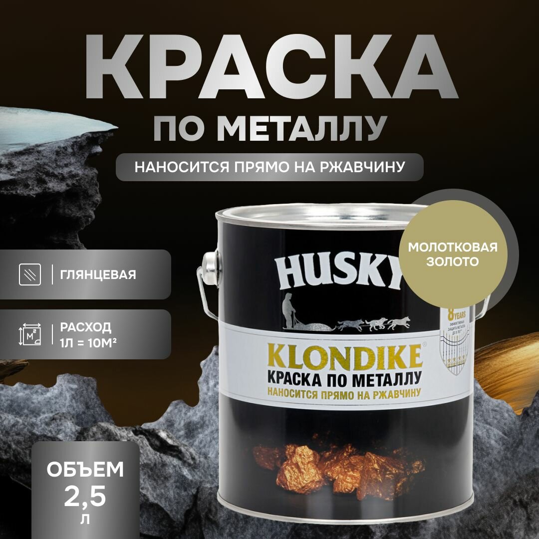 HUSKY KLONDIKE Грунт-эмаль 3 в 1, краска по металлу молотковая, по ржавчине, декоративная, золото (2,5л) информация: