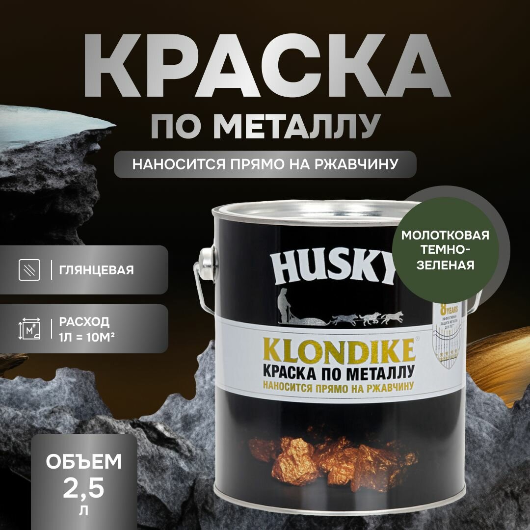 HUSKY KLONDIKE Грунт-эмаль 3 в 1, краска по металлу молотковая, по ржавчине, декоративная, темно-зеленая (2,5л) информация: