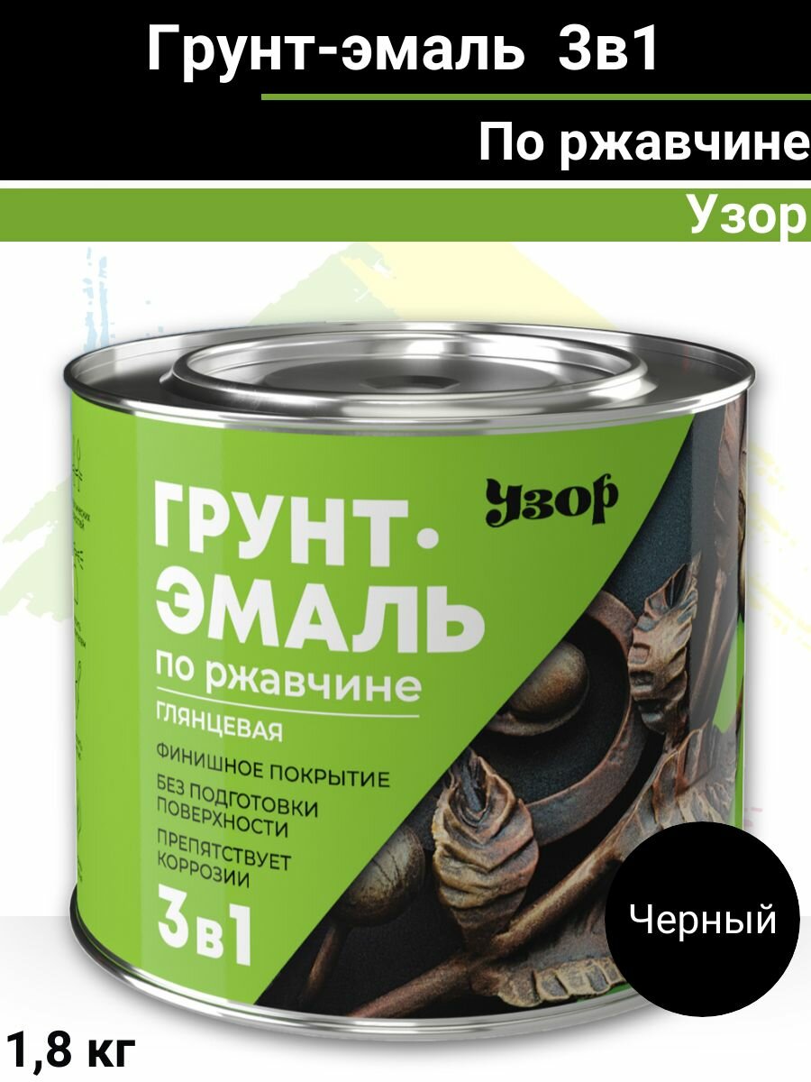 Грунт-эмаль по ржавчине 3 в 1 глянцевая черная "Узор" 1,8 кг. информация: