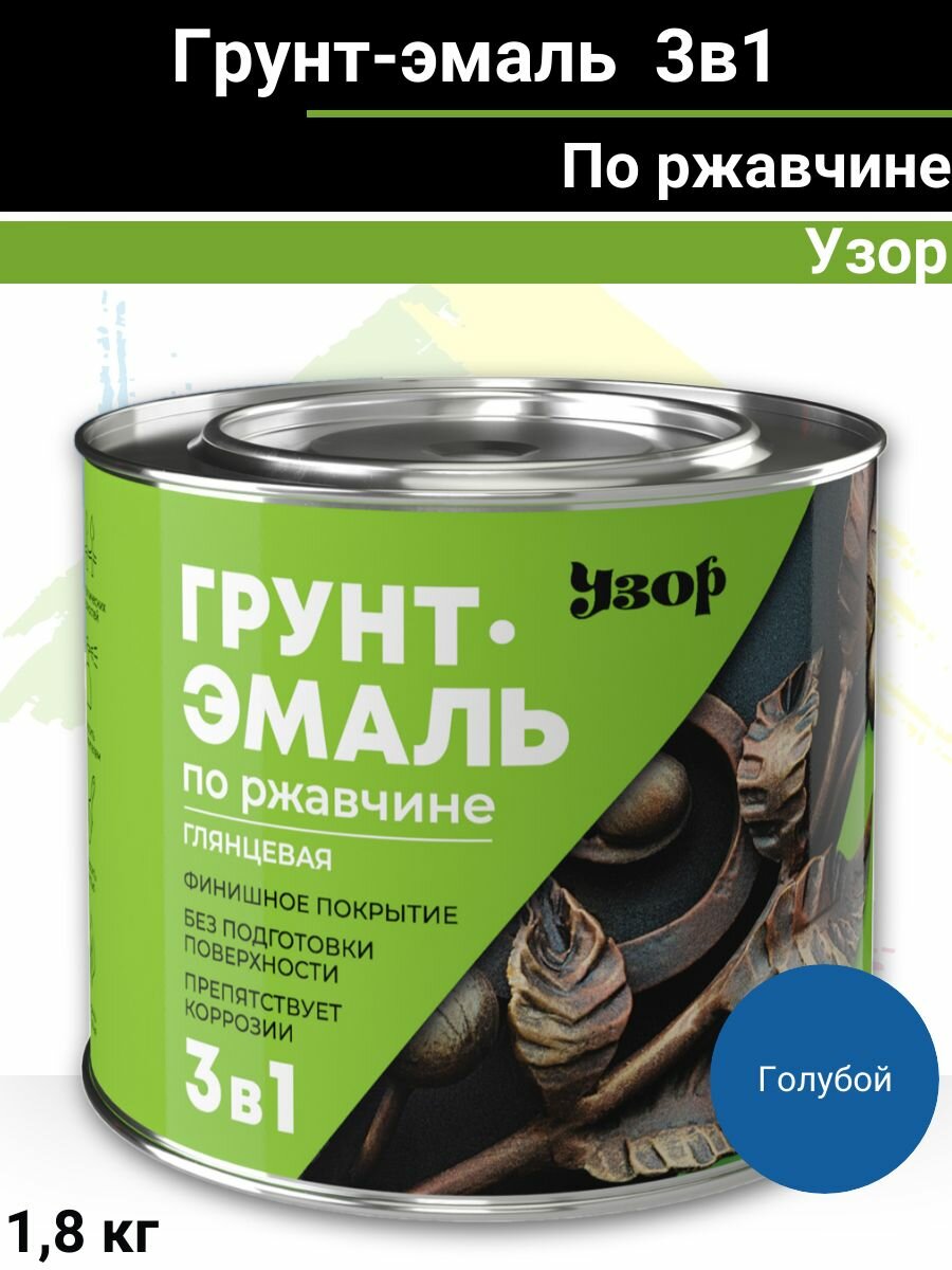 10 цен на Грунт-эмаль по ржавчине 3 в 1 глянцевая голубая "Узор" 1,8кг