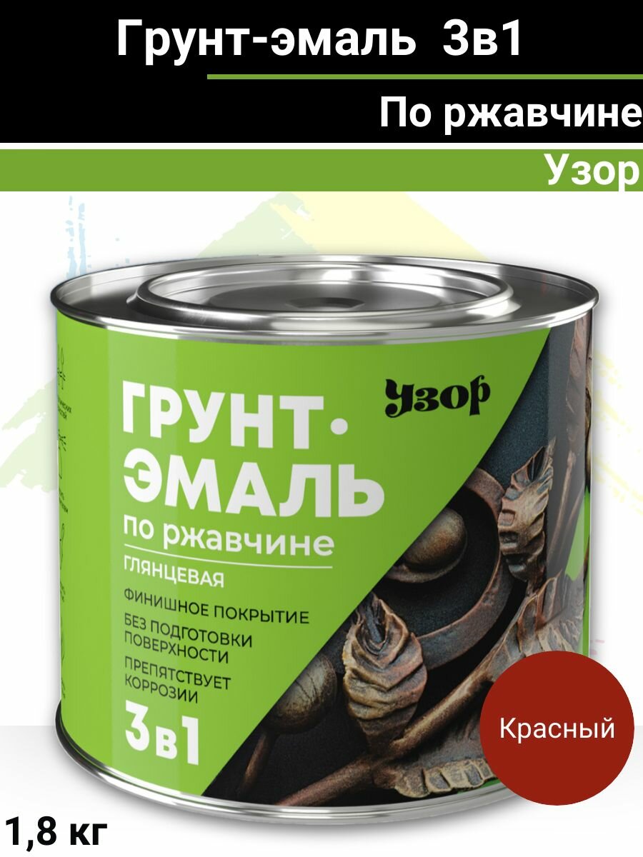 10 цен на Грунт-эмаль по ржавчине 3 в 1 глянцевая красная "Узор" 1,8кг