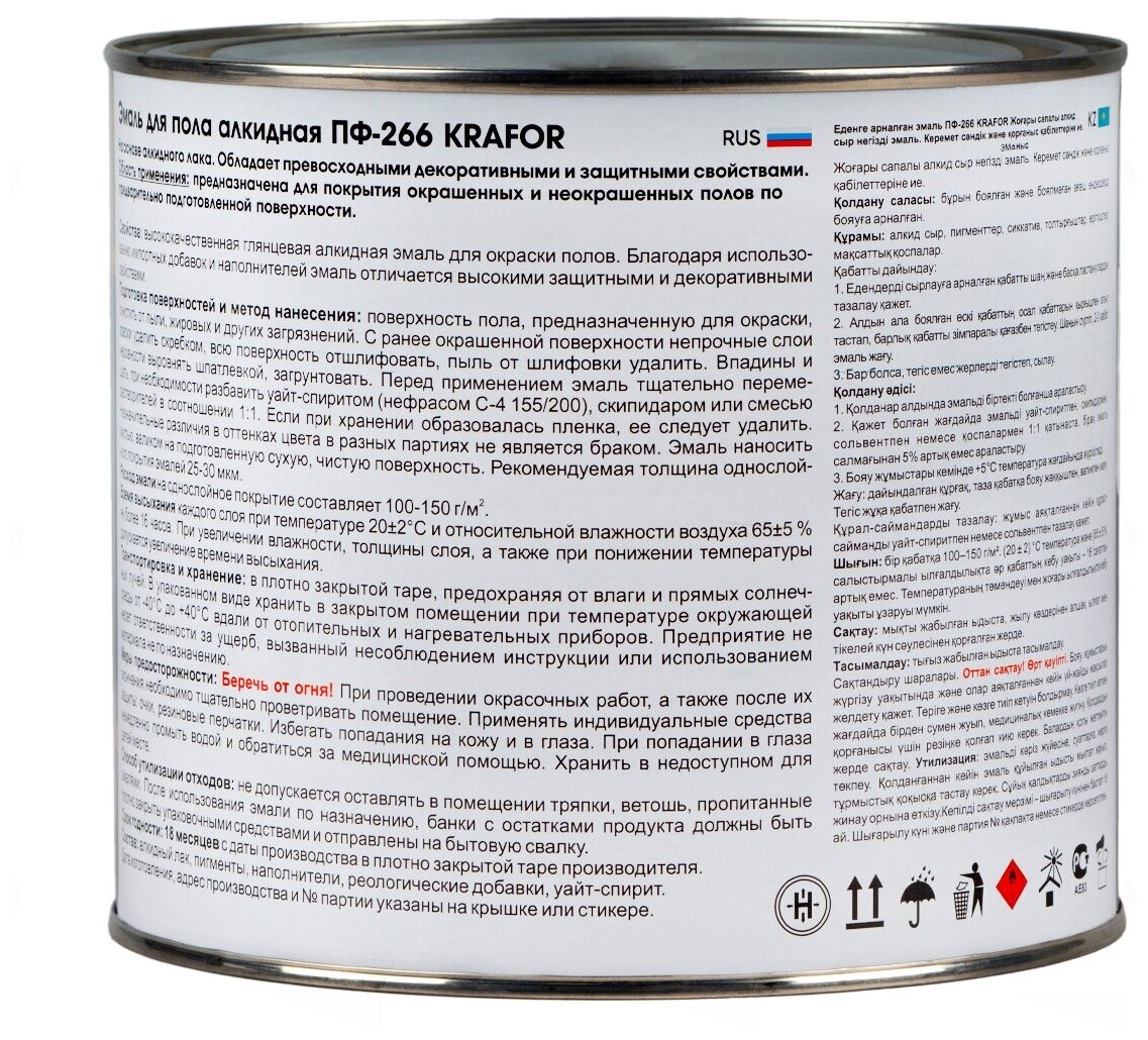 Характиристики этого товара не найдены!Отзывы на Эмаль ПФ-266 для пола Krafor, алкидная, глянцевая, 1,9 кг, желто-коричневая, 1шт, жестяная банка
