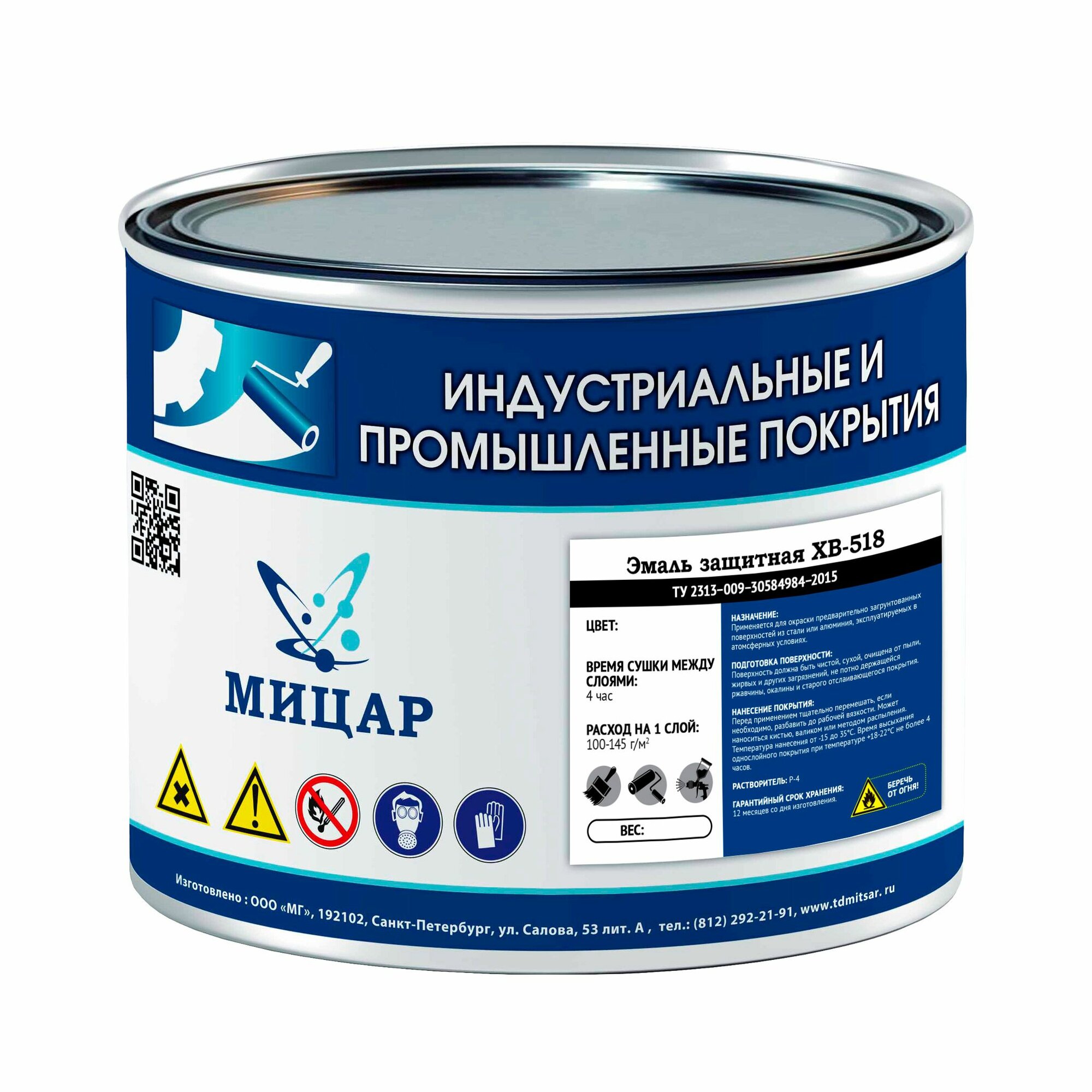 Стойкая быстросохнущая эмаль Мицар ХВ-518 защитная атмосферостойкая 1,8кг информация: