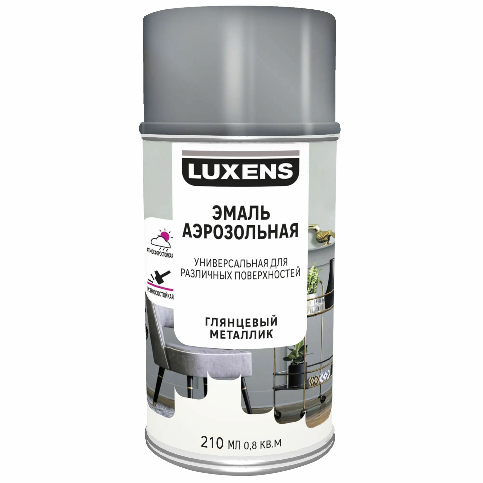 Эмаль аэрозольная декоративная Luxens глянцевая металлик цвет серебристый 210 мл информация: