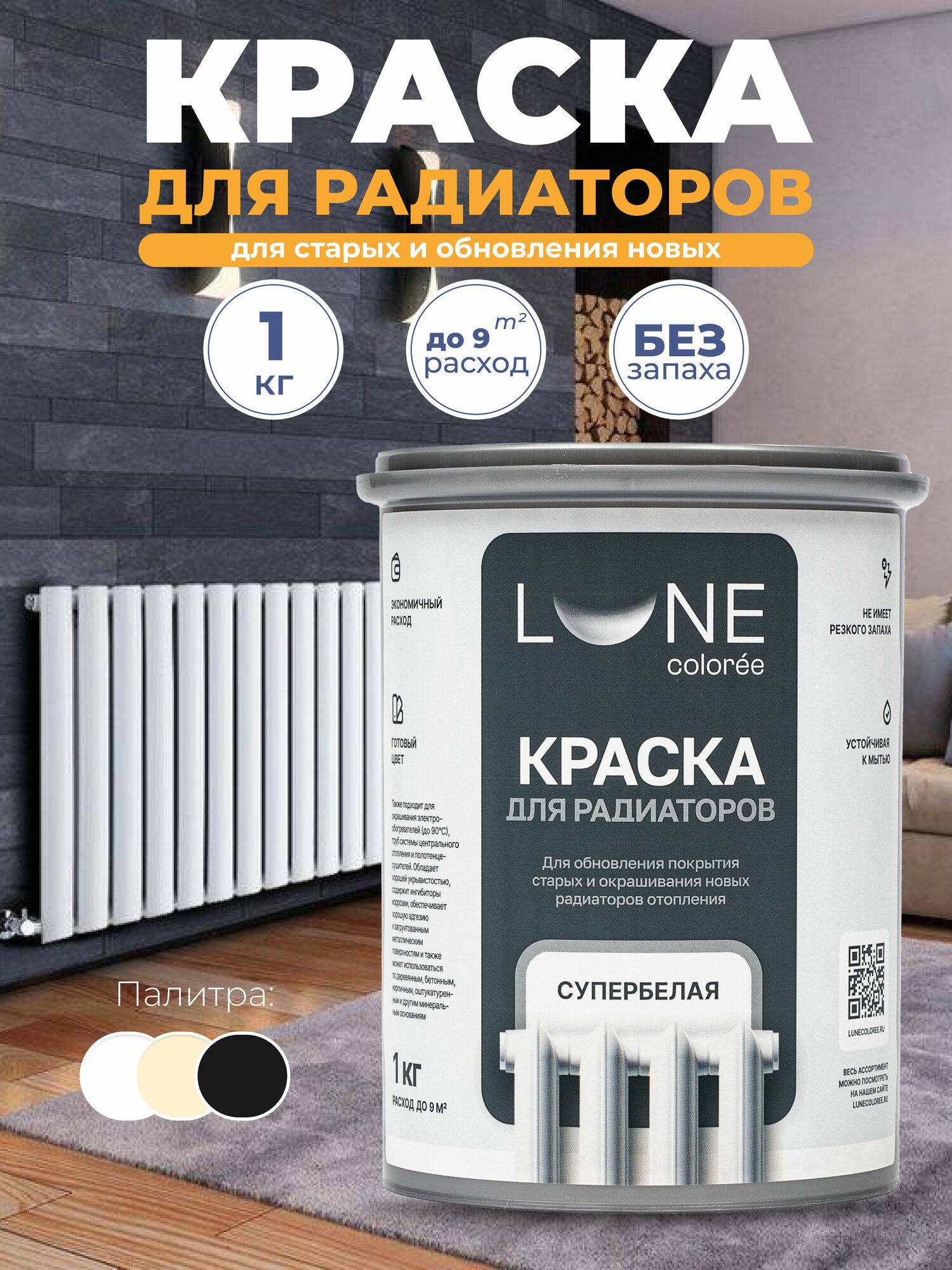 Термостойкая краска для радиаторов отопления, батарей и труб без запаха, полуглянцевая, акриловая, супербелая, водостойкая (1 кг) информация: