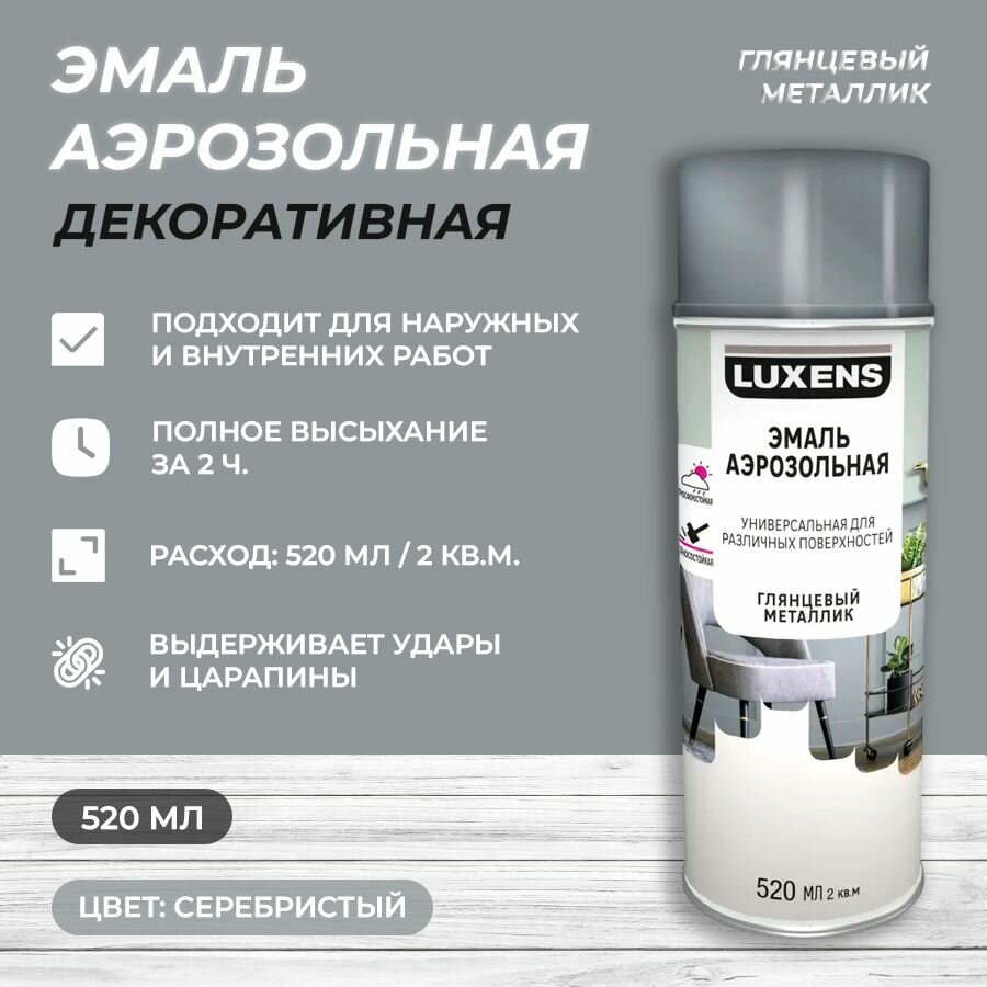 Эмаль аэрозольная декоративная Luxens глянцевая металлик цвет серебристый 520 мл информация: