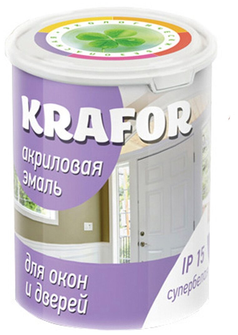Эмаль для окон и дверей Krafor, акриловая, глянцевая, 1 кг, супербелая информация: