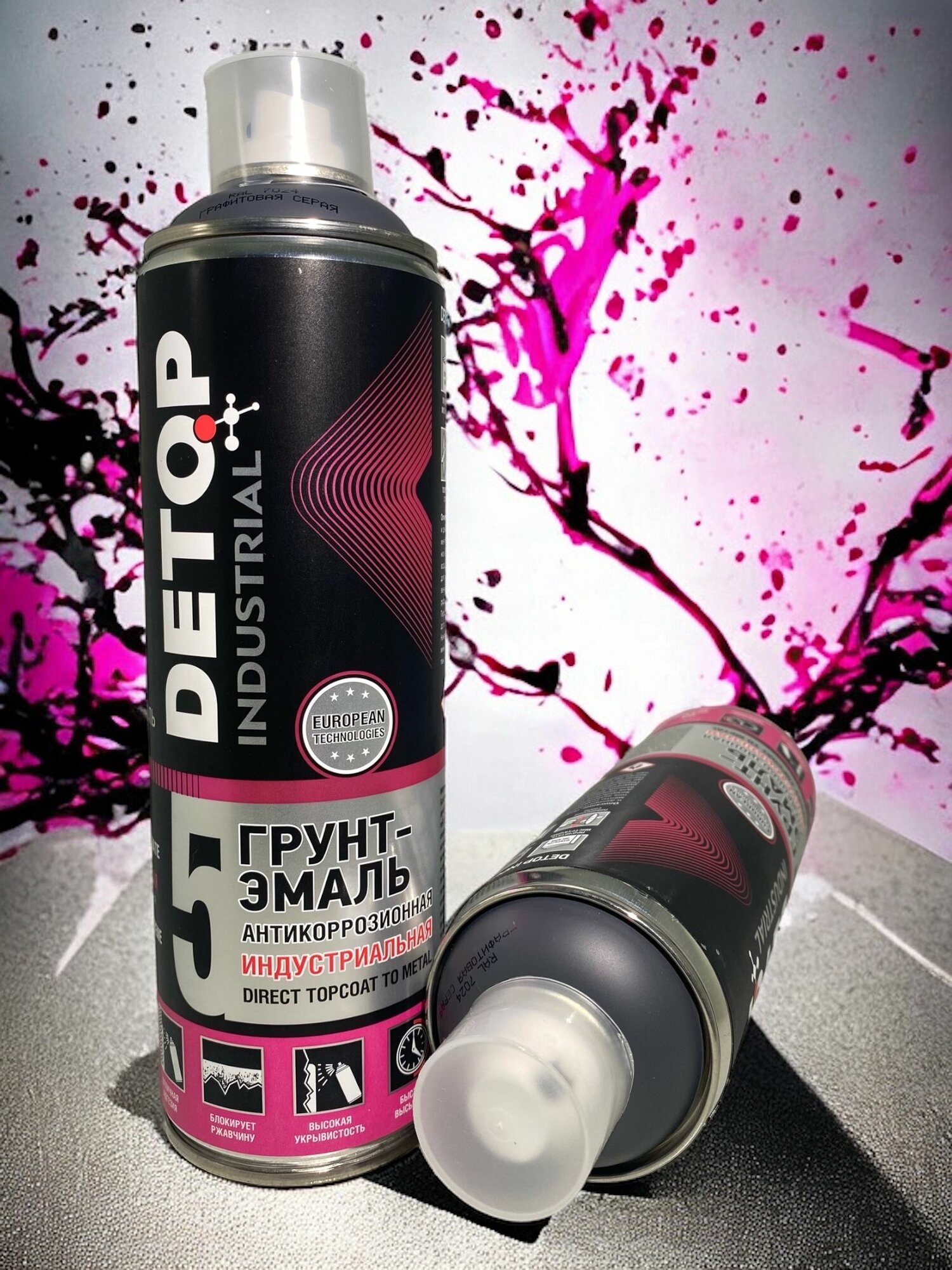 Грунт-эмаль антикоррозионная DETOP №5, RAL-7024 Графитово-серый, 650 мл информация: