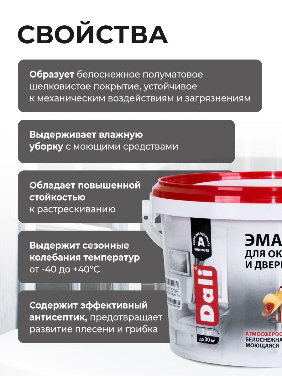 DALI / ДАЛИ эмаль для окон и дверей акриловая атмосферостойкая база А (3 кг) информация: