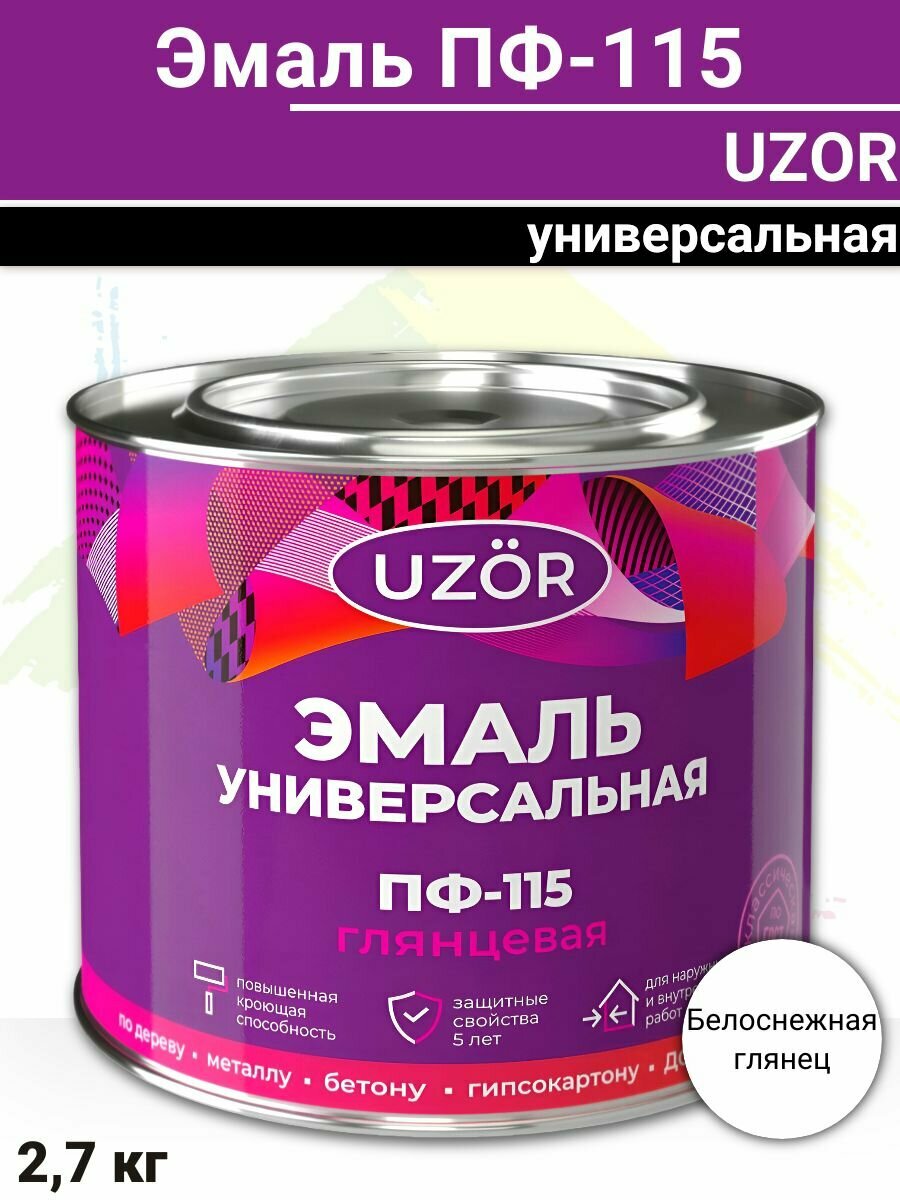 Эмаль ПФ-115 "UZOR" белоснежная глянец 2,7кг информация: