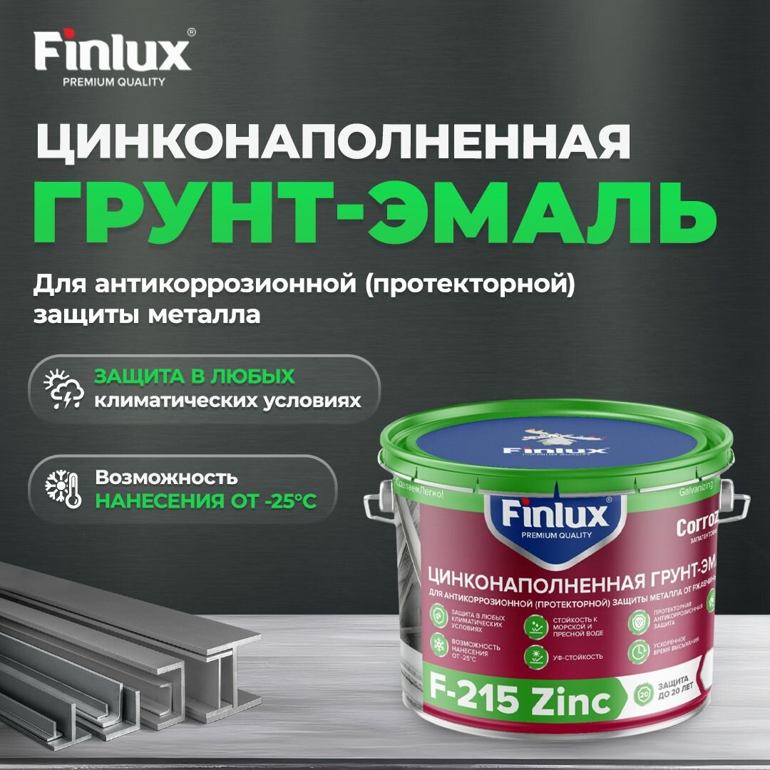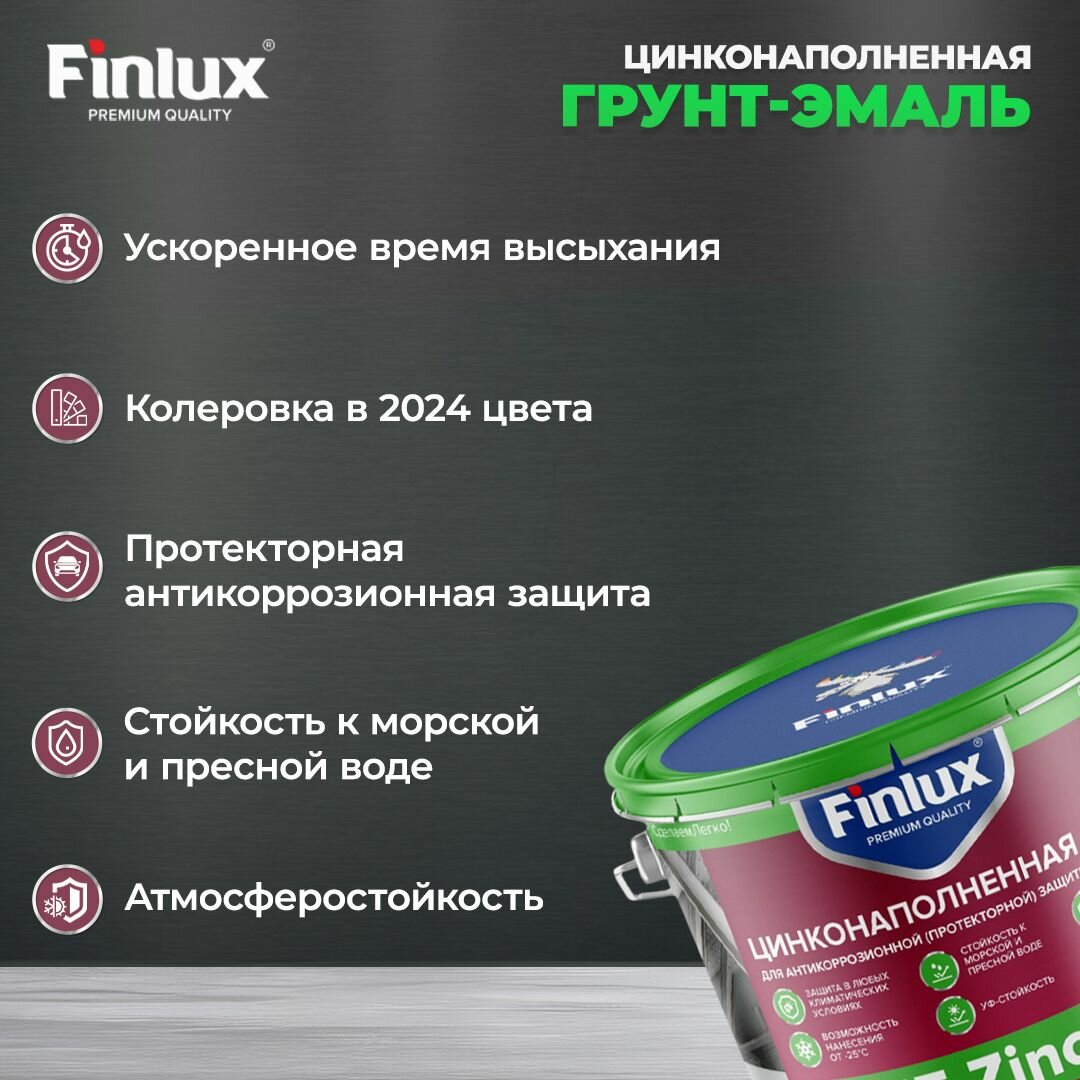 Цинковая краска для антикоррозионной защиты металла от ржавчины, матовая, Finlux F-215 Zinc 0.75 л, цвет Серый информация: