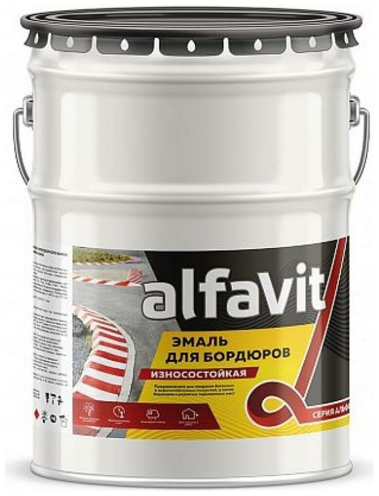 Краска для бордюрного камня Alfavit серия Альфа, износостойкая, 25 кг, черная, 1шт, жестяное ведро информация: