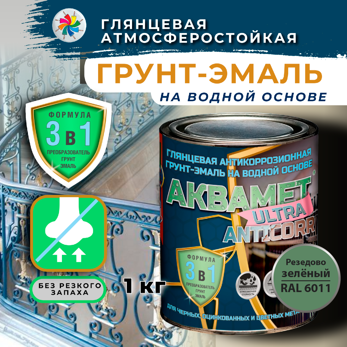 Грунт-эмаль Аквамет ULTRA "Anticorr" без запаха, акриловая, по ржавчине, зеленая информация: