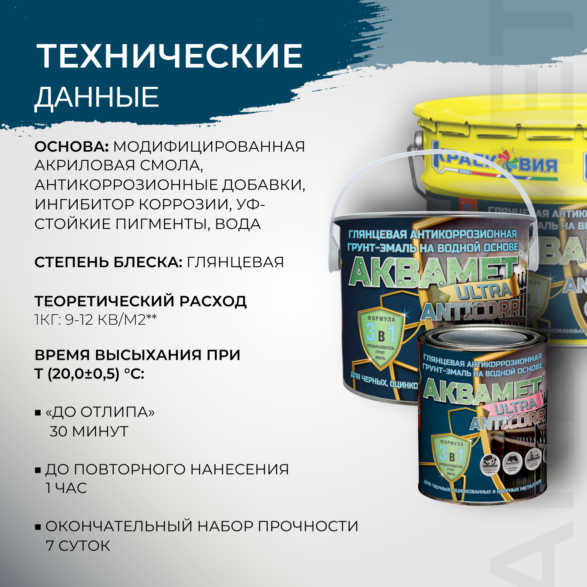 Краска по металлу, грунт эмаль по ржавчине, Аквамет ULTRA Anticorr, RAL 5024, 3 кг. информация: