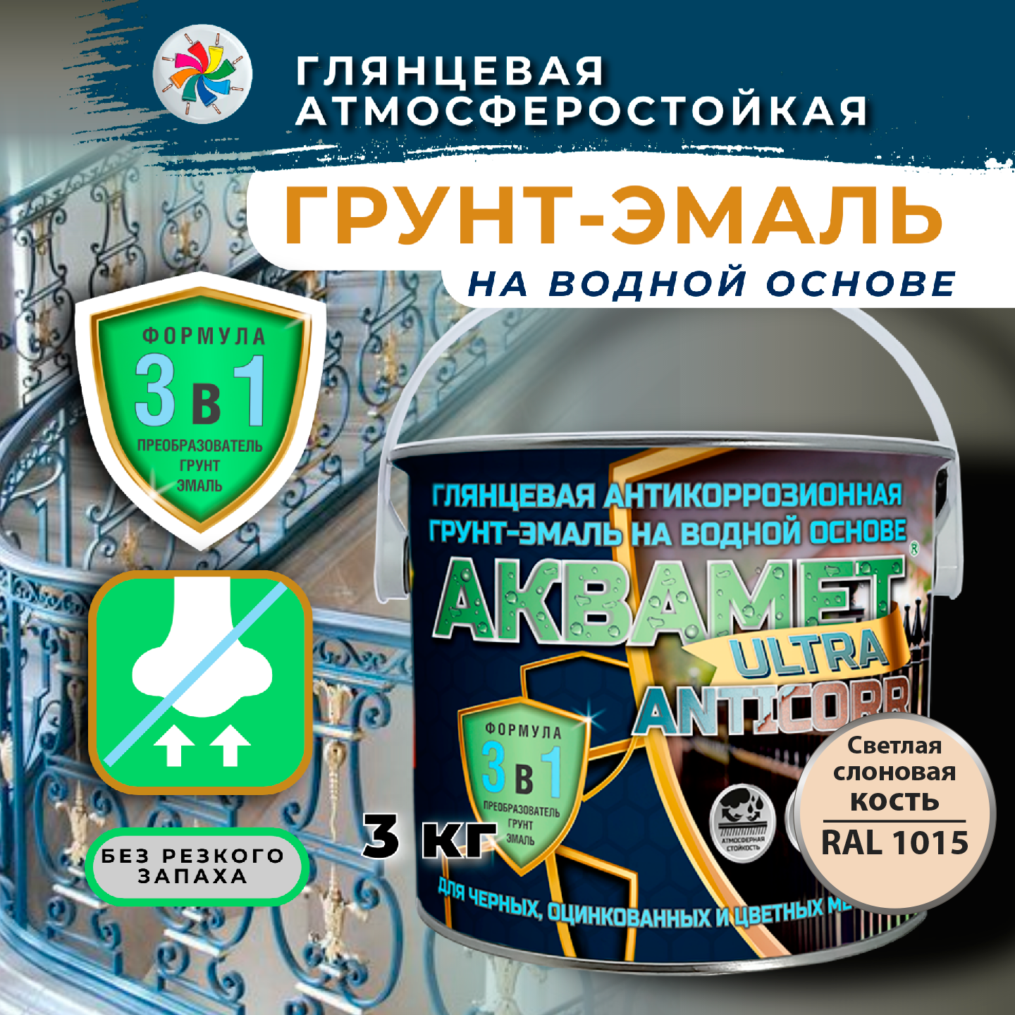 Краска по металлу, грунт эмаль по ржавчине, Аквамет ULTRA Anticorr, RAL 1015, 3 кг. информация: