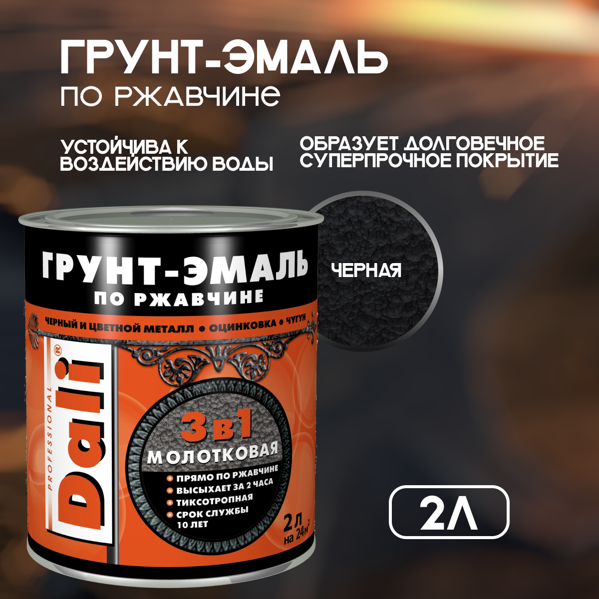 Грунт эмаль 3 в 1 по ржавчине молотковая черная 2л информация: