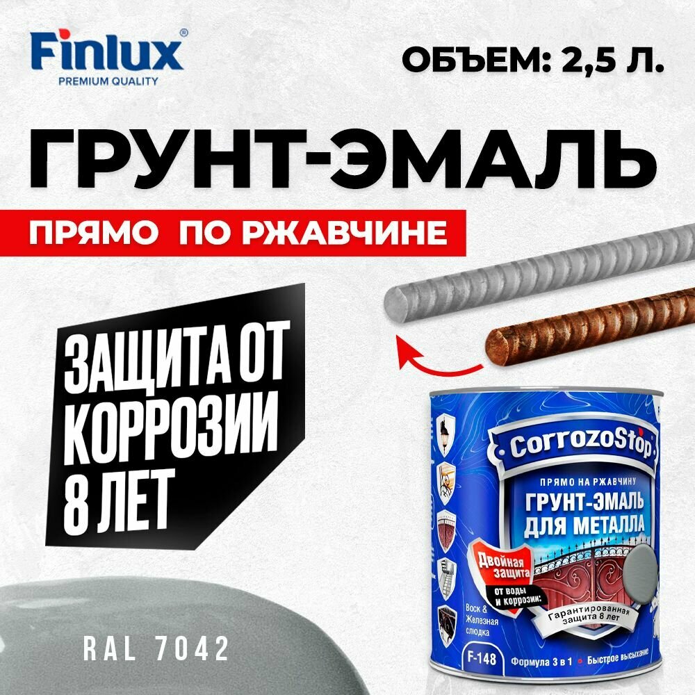 10 цен на Грунт-эмаль Finlux F-148 Gold по ржавчине 3 в 1, краска по металлу, глянцевое покрытие, 2.5 кг, цвет серый