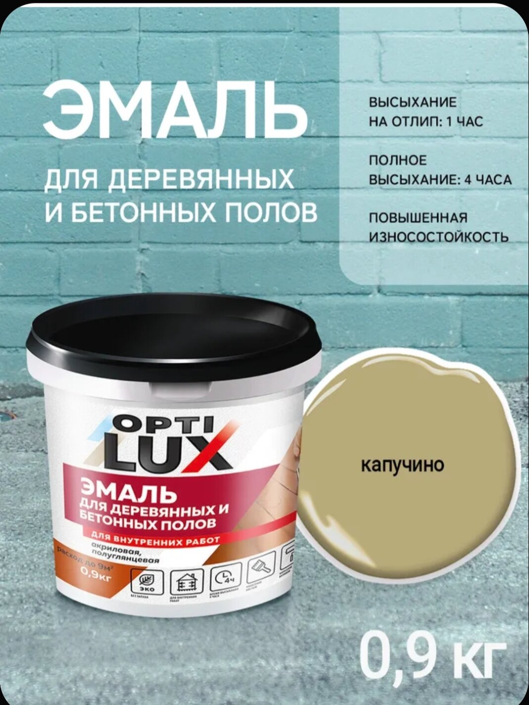 Эмаль акриловая OPTILUX (ОПТИЛЮКС) для деревянных и бетонных полов капучино 0,9кг. информация: