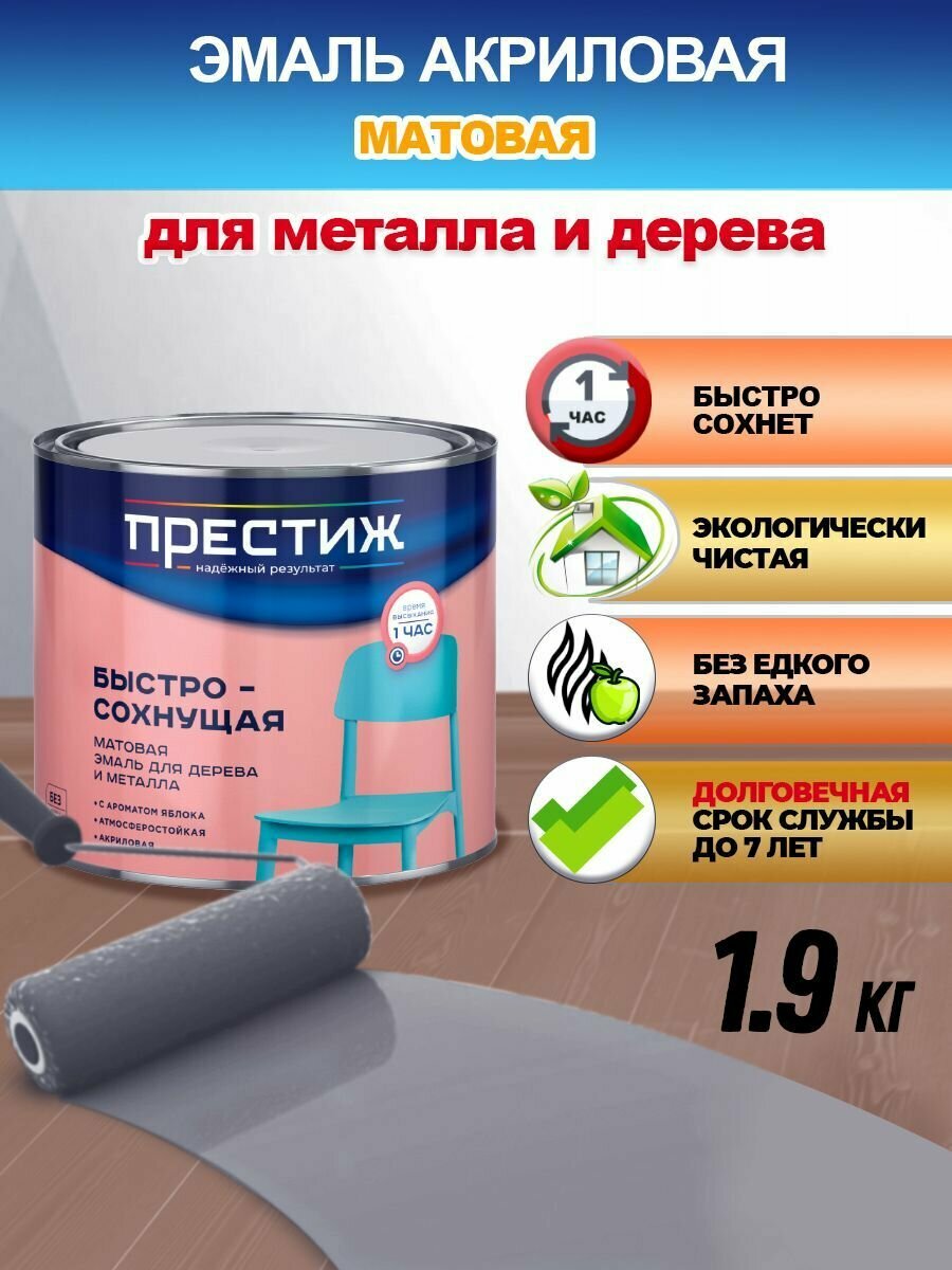 Эмаль акриловая для дерева и металла быстросохнущая серая матовая 1,9кг Престиж информация: