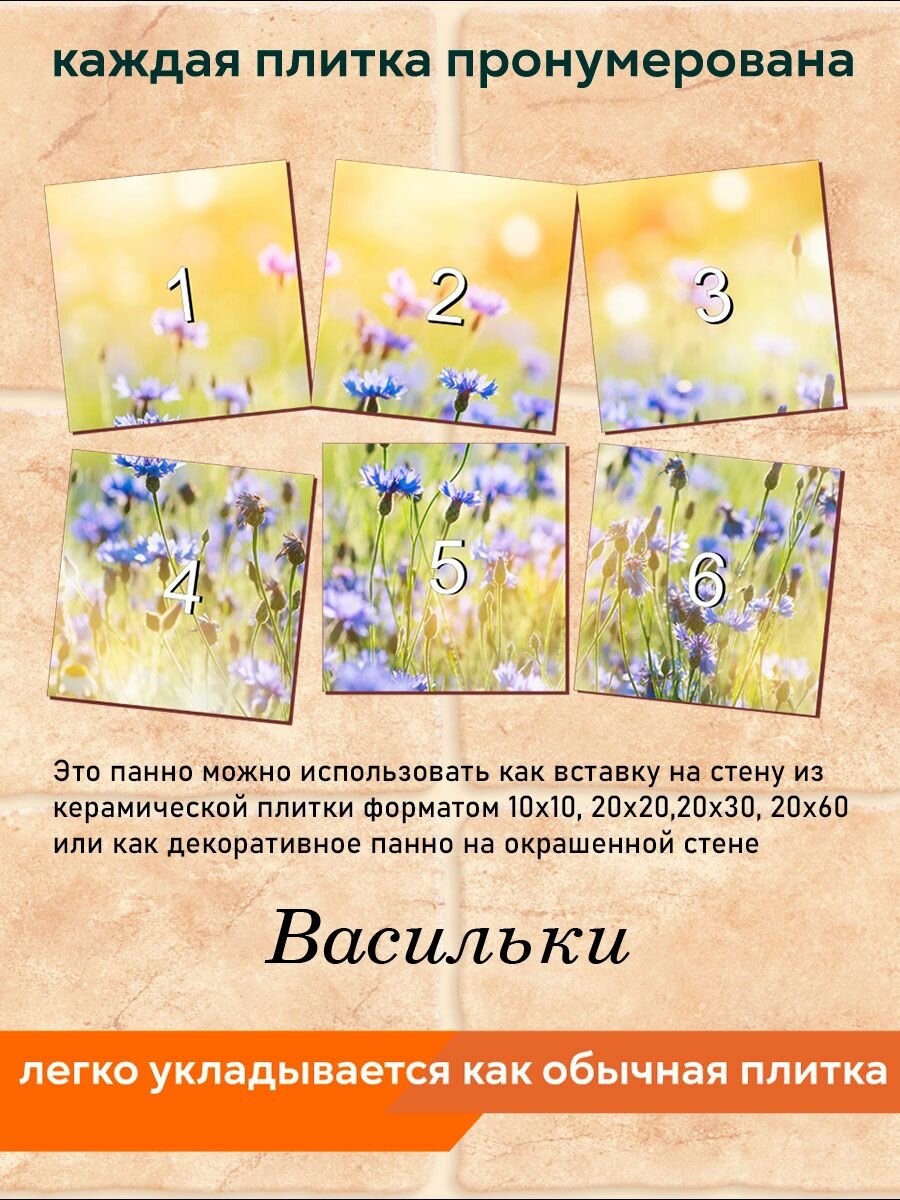 Панно из плитки Fres-co "Васильки" керамическое, декоративное, полуглянцевое, 60х40 см информация: