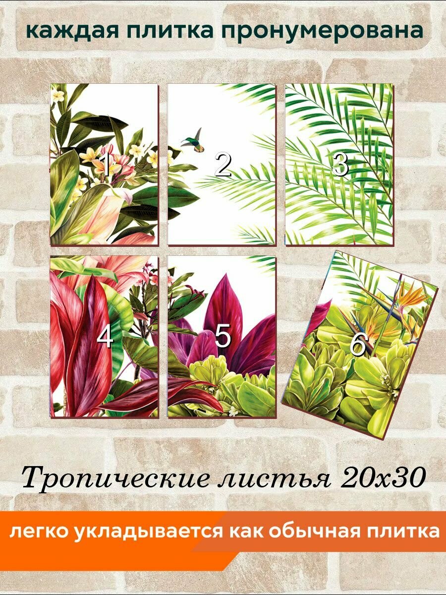 Панно из плитки Fres-co "Тропические листья 20х30", керамическое, декоративное, полуглянцевое, 60х60 см информация: