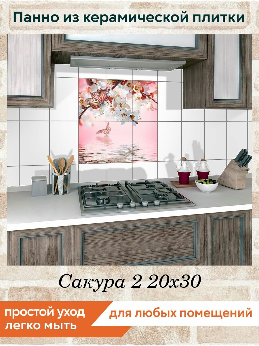 Панно из плитки Fres-co "Сакура 2 20х30", керамическое, декоративное, полуглянцевое, 60х60 см информация: