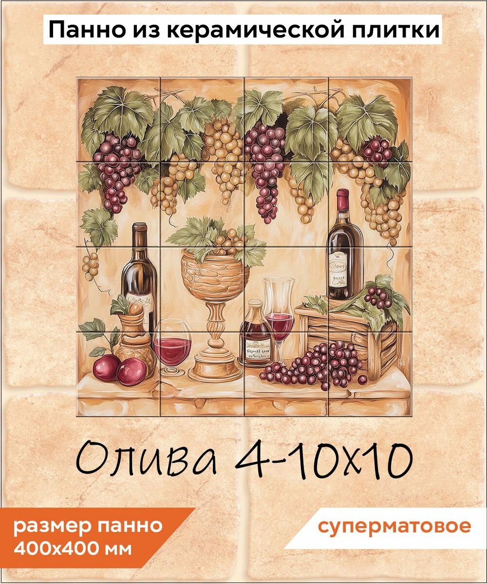 Панно из плитки Fres-co "Олива 4 10x10" керамическое, матовое, декоративное 40х40 см информация: