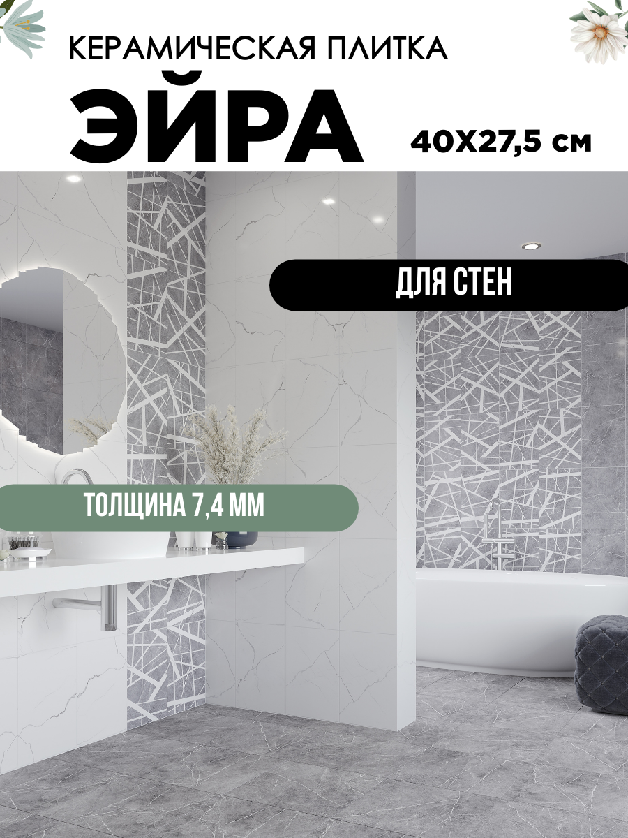 Плитка керамическая для стен Керамин Эйра 1 серый 40х27,5 см (15 шт 1,65 м2) информация:
