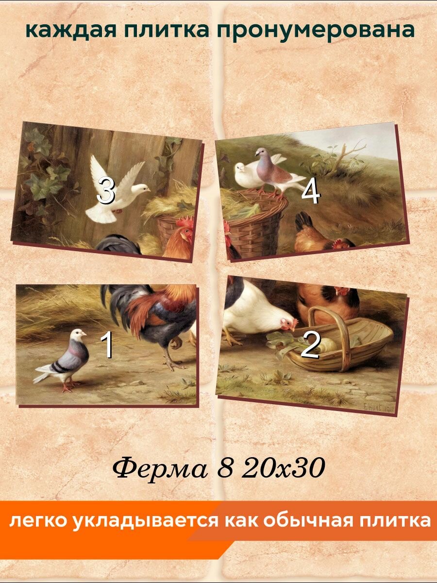 Панно из плитки Fres-co "Ферма 8 20х30", керамическое, декоративное, полуглянцевое, 60х40 см информация: