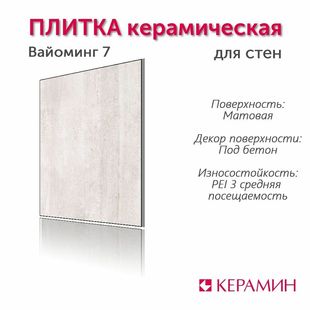 Плитка керамическая для стен Керамин Вайоминг 7 светло-серый 400х275 мм (15 шт 1,65 м2) информация: