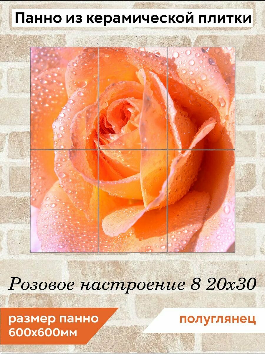 Панно из плитки Fres-co "Розовое настроение 8 20х30", керамическое, декоративное, полуглянцевое, 60х60 см информация: