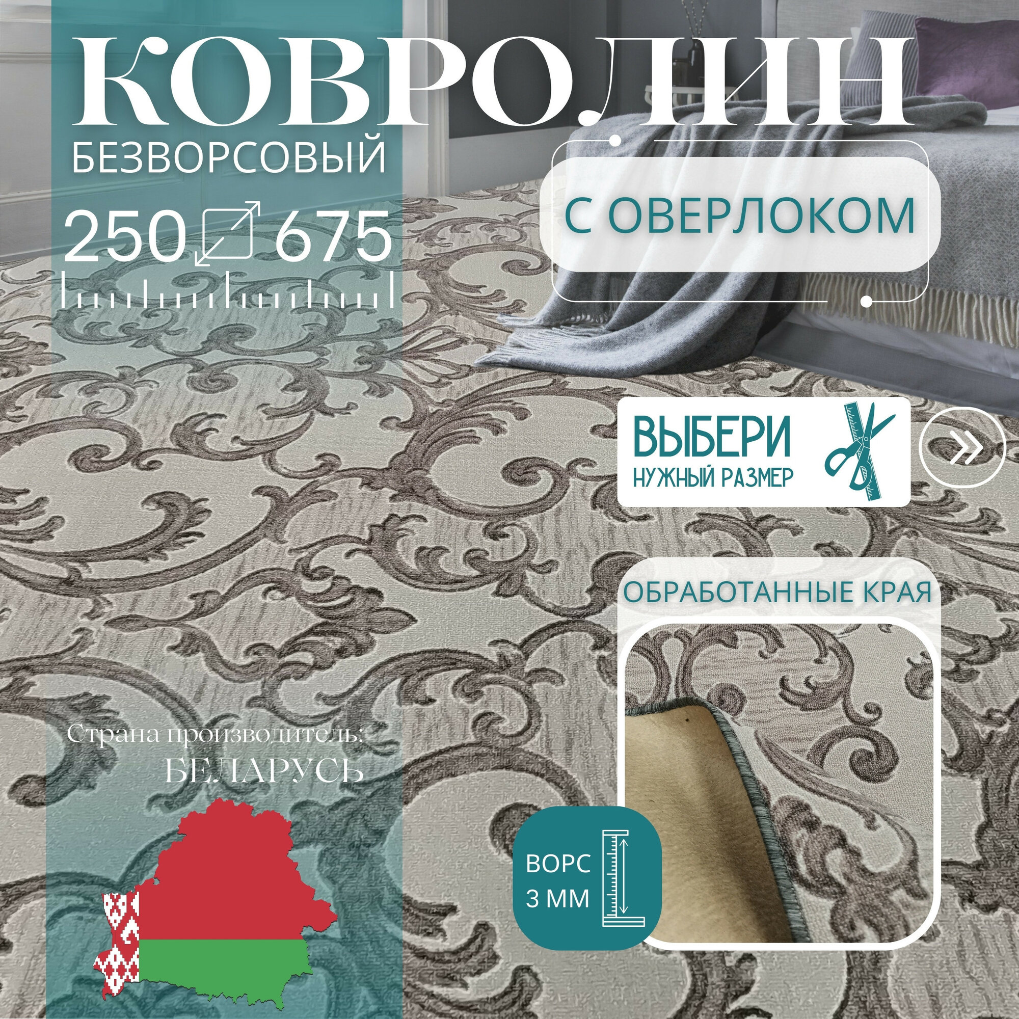 Ковролин метражом 2,5х6,75 м, без ворса "Прованс", бежевый с оверлоком информация: