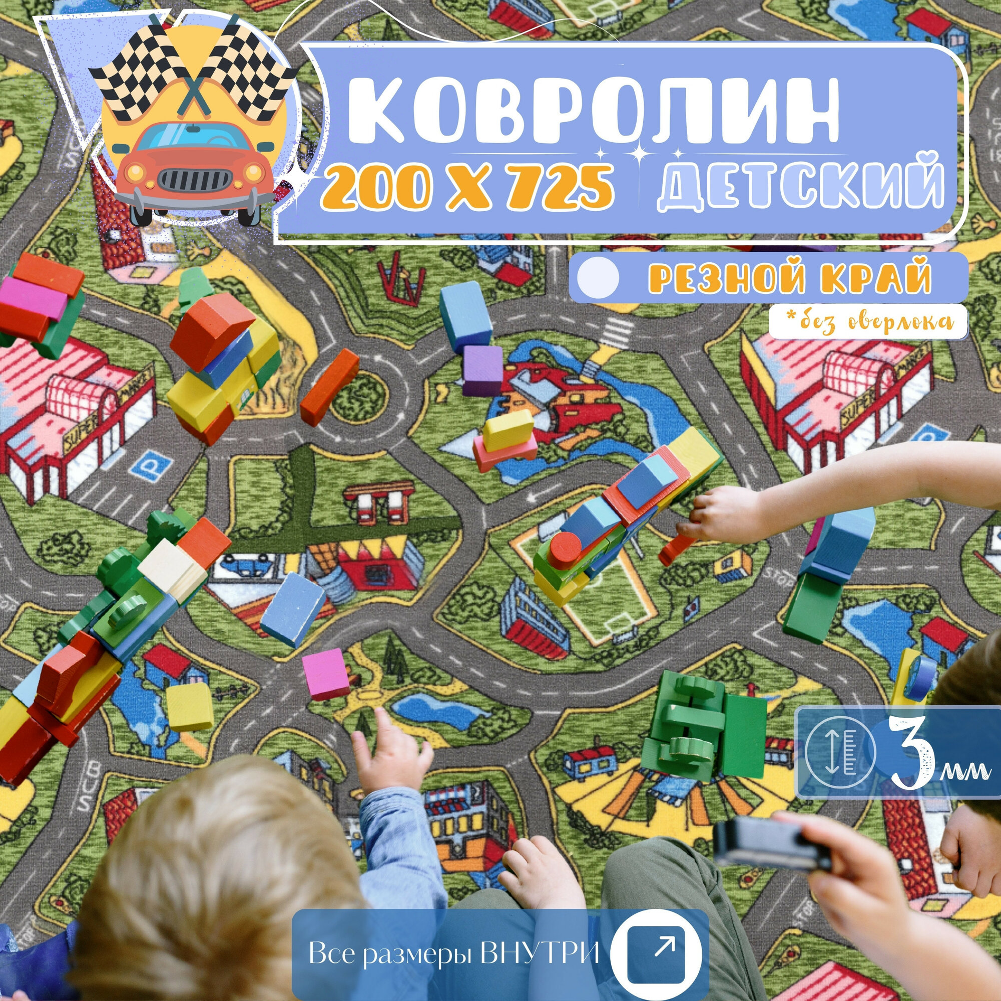 10 цен на Детский ковролин 2х7,25 м, "С дорогами", серо-зеленый без оверлока