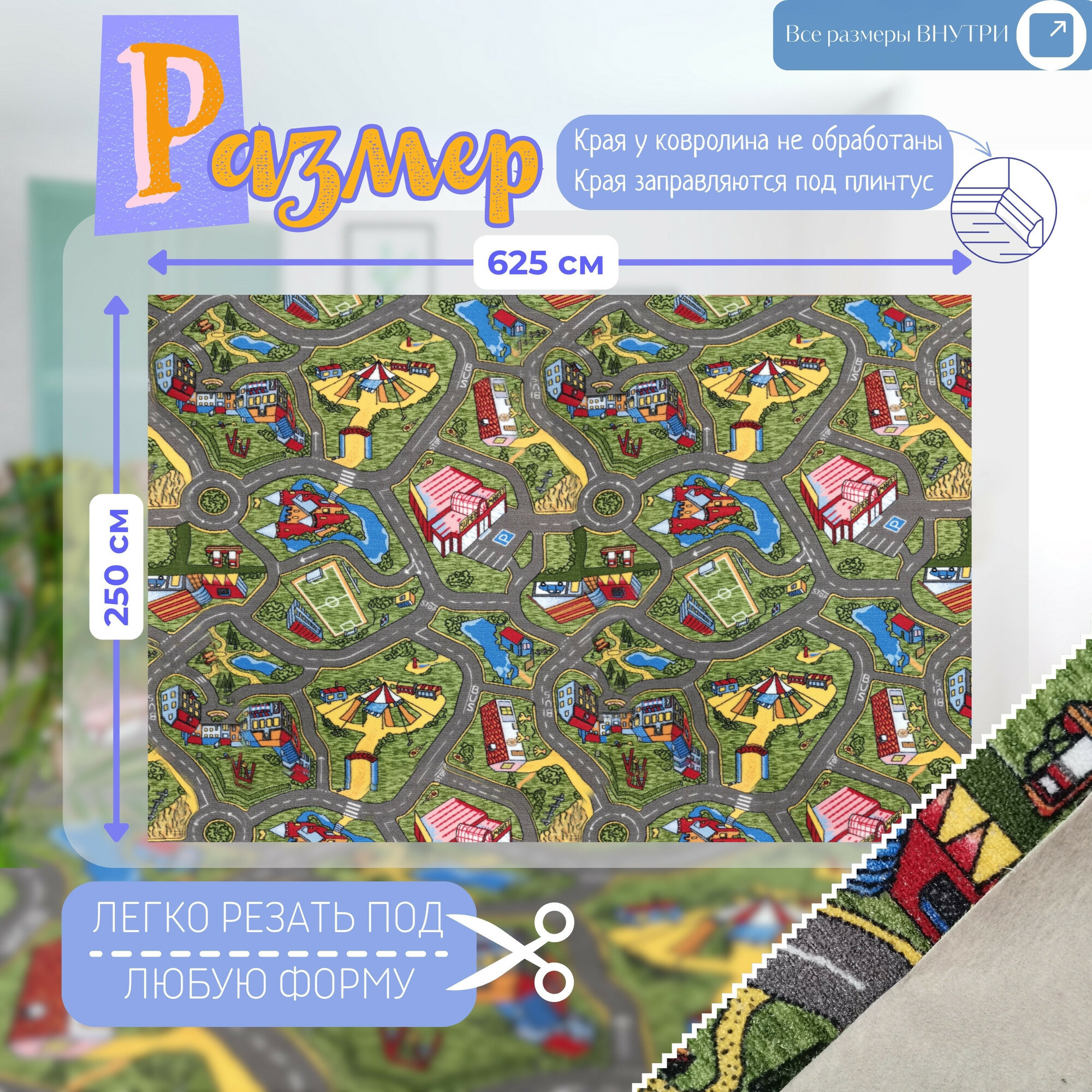 10 цен на Детский ковролин 2,5х6,25 м, "С дорогами", серо-зеленый без оверлока