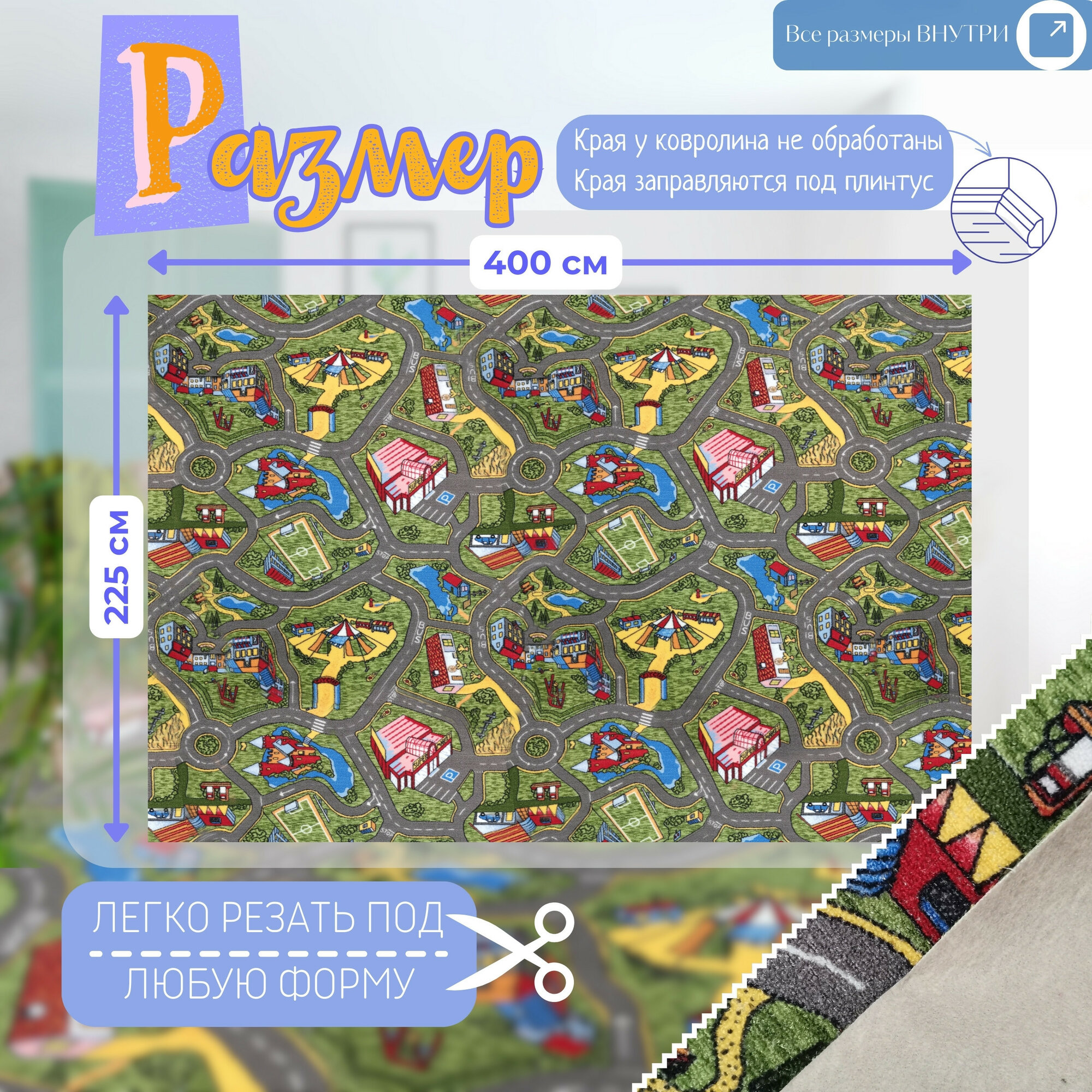 10 цен на Детский ковролин 4х2,25 м, "С дорогами", серо-зеленый без оверлока