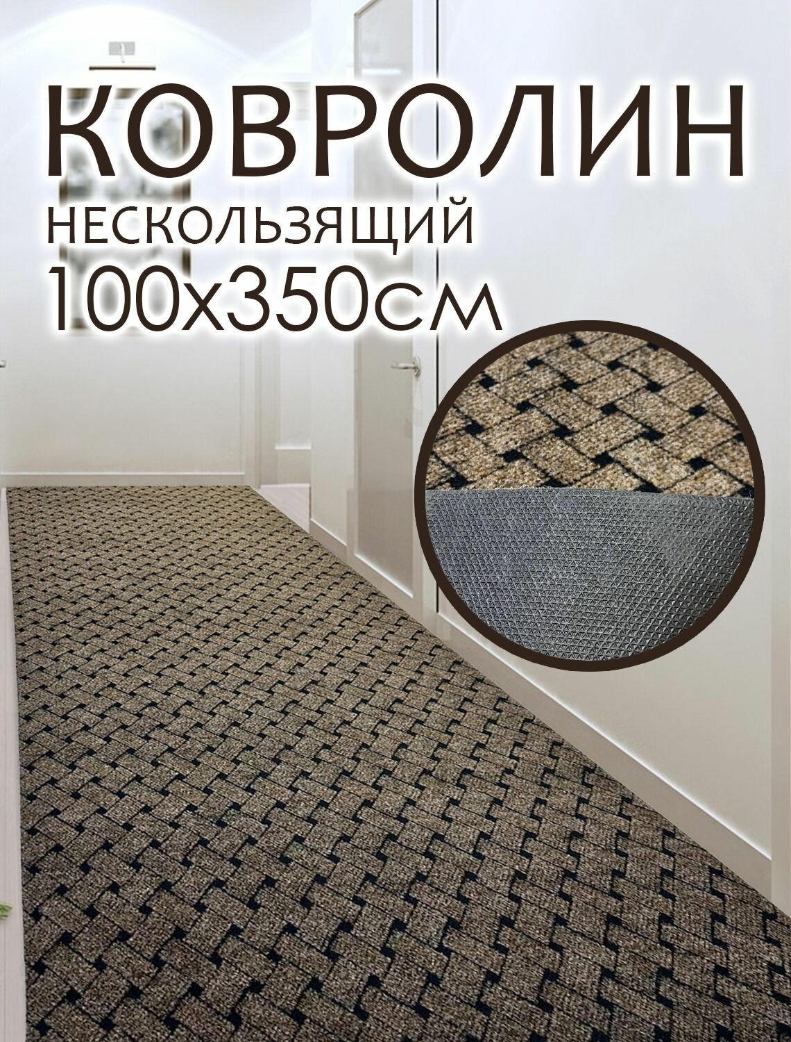 Ковролин на пол метражом 1х3.5 м. для офиса и дома, противоскользящий информация: