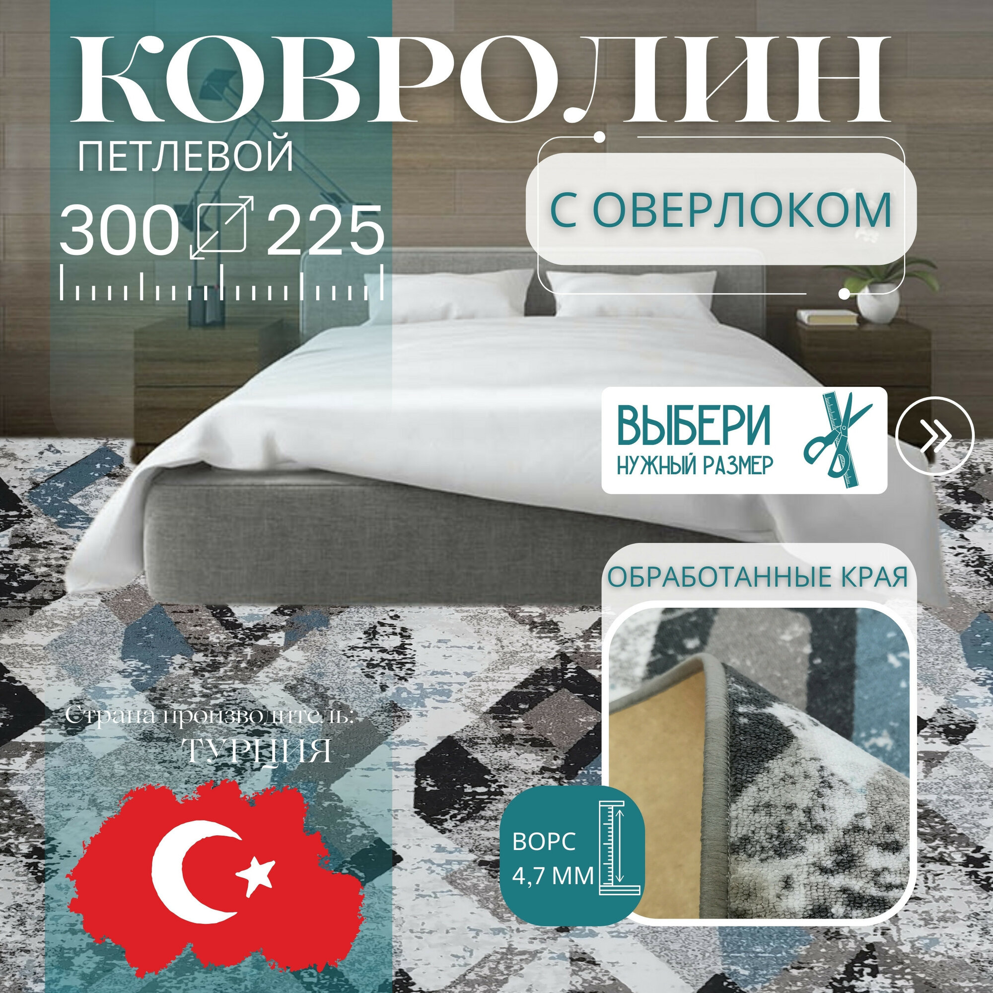 Ковролин метражом 3х2,25 м, гладкий "Ромб", серо-синий с оверлоком информация: