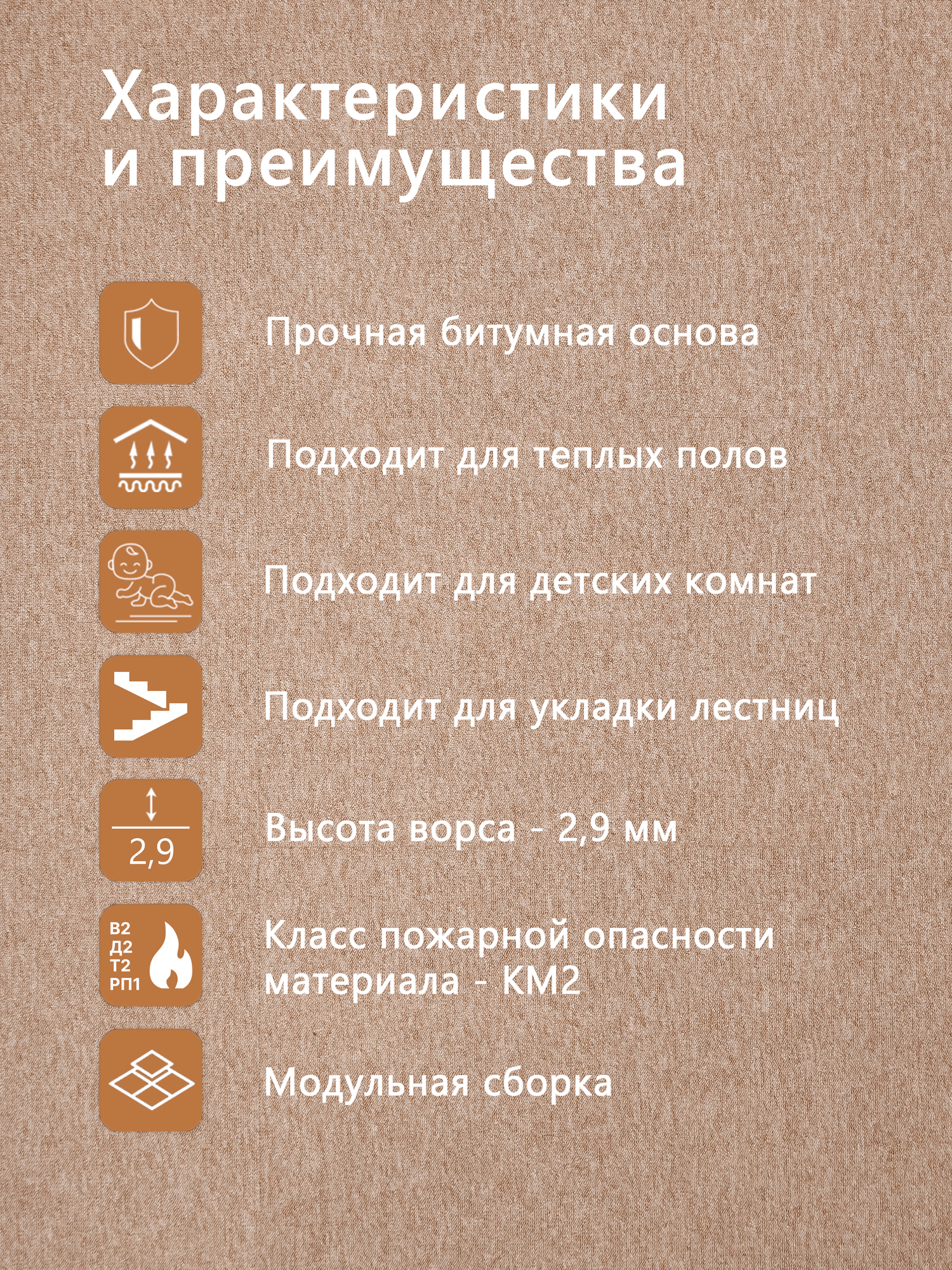 Плитка ковровая коммерческая Bonkeel Space Beige бежевая, 50х50, 5м2/уп информация: