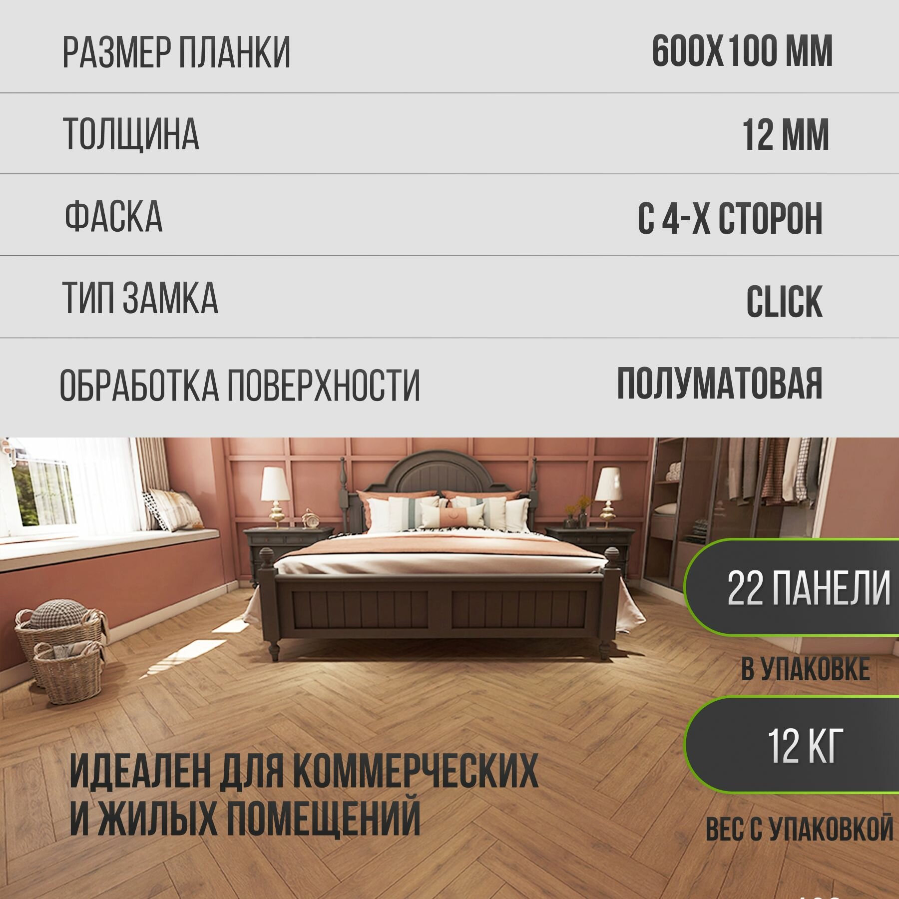 Ламинат напольный влагостойкий WOODSTYLE ARROW 34 класс, толщина 12 мм с фаской, ДУБ кивер 108 информация: