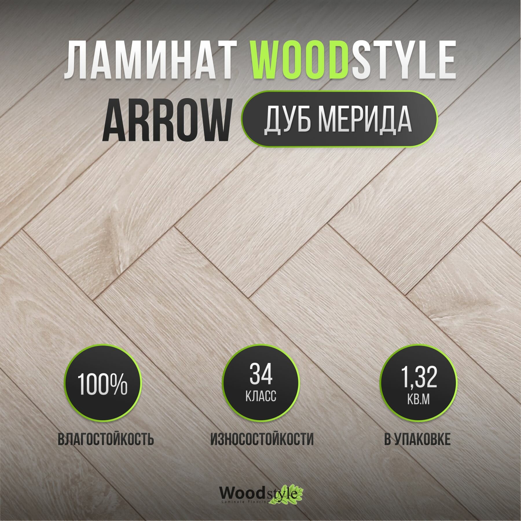 Ламинат напольный влагостойкий WOODSTYLE ARROW 34 класс, толщина 12 мм с фаской, ДУБ мерида 103 информация: