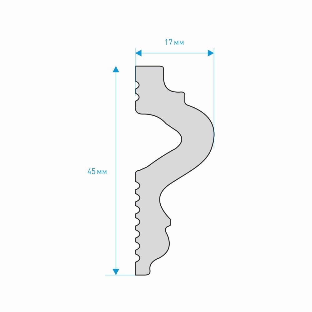 Молдинг настенный Перфект Plus P161, белый под покраску, 4.5x0.8x200 см, дюрополимер, влагостойкий, 1 шт