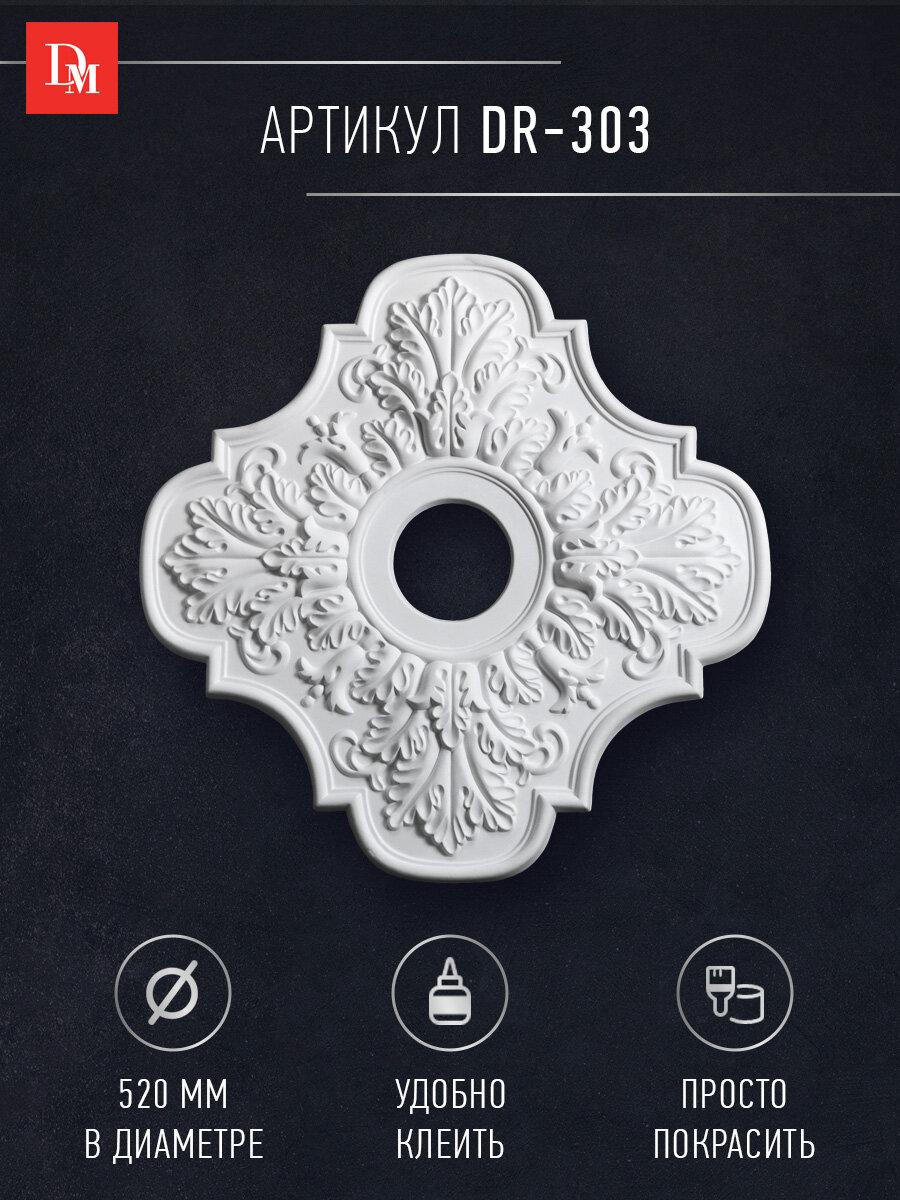 Отзывы на Розетка потолочная Decomaster DDR-303 DR-303, полиуретан, под покраску, влагостойкая, 1 шт.