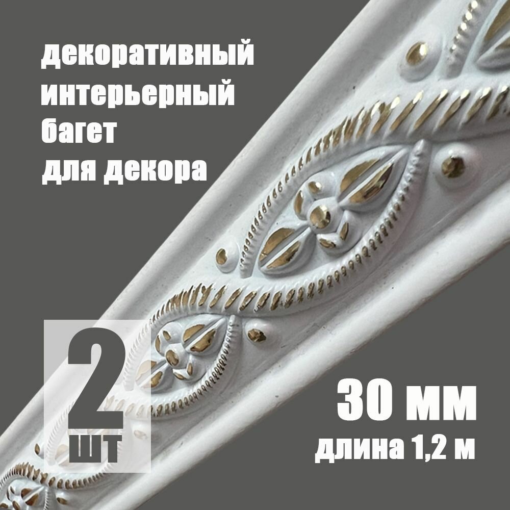 10 цен на Багет интерьерный 2 шт. декоративный профиль 30*14*1200 Белый с золотом "Афины" (ПИ30А)