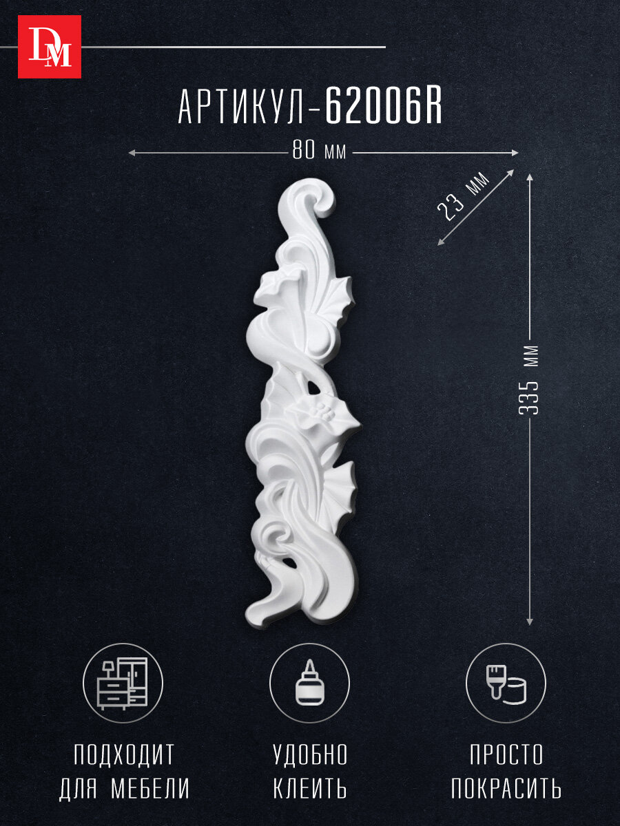 10 цен на Орнамент декор для дома, Decomaster 62006R, лепнина полиуретан, 335 х 80 х 23 мм