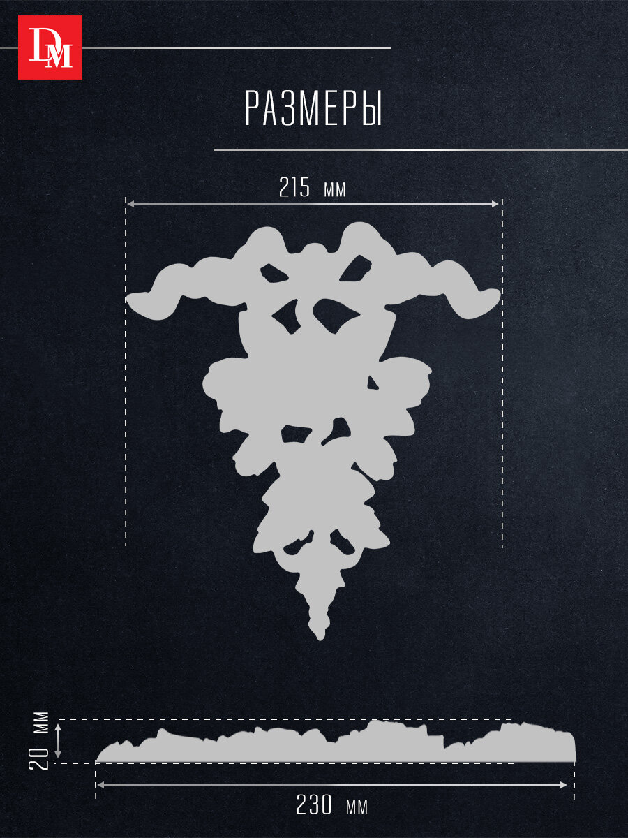 Орнамент декор для дома, Decomaster DA 779, лепнина полиуретан, 215 х 230 х 20 мм информация: