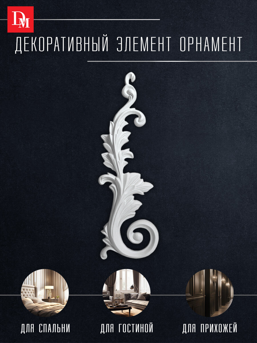 Отзывы на Орнамент декор для дома, Decomaster 66098L, лепнина полиуретан, 400 х 135 х 25 мм