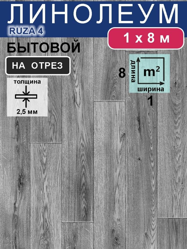 Линолеум TEXTURA Ruza 4, бытовой, 1x8 м, темно-серый, толщина 2,5 мм информация: