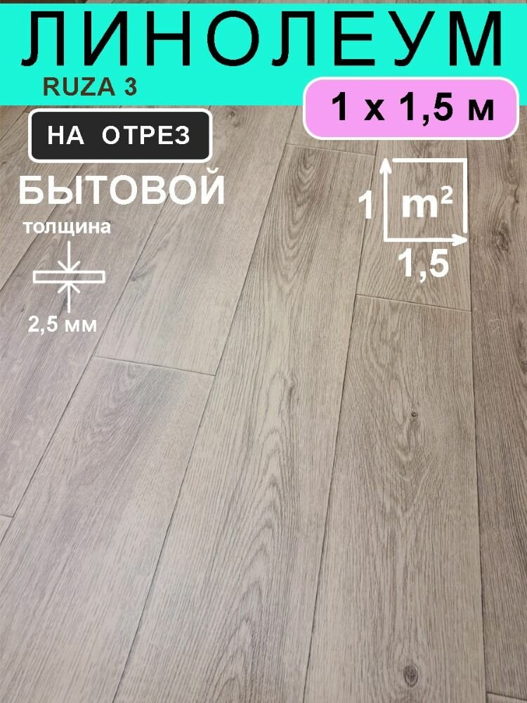 Линолеум TEXTURA "Ruza", бытовой, светло-бежевый, дерево, на отрез, 1x2.5м 2 200 ₽