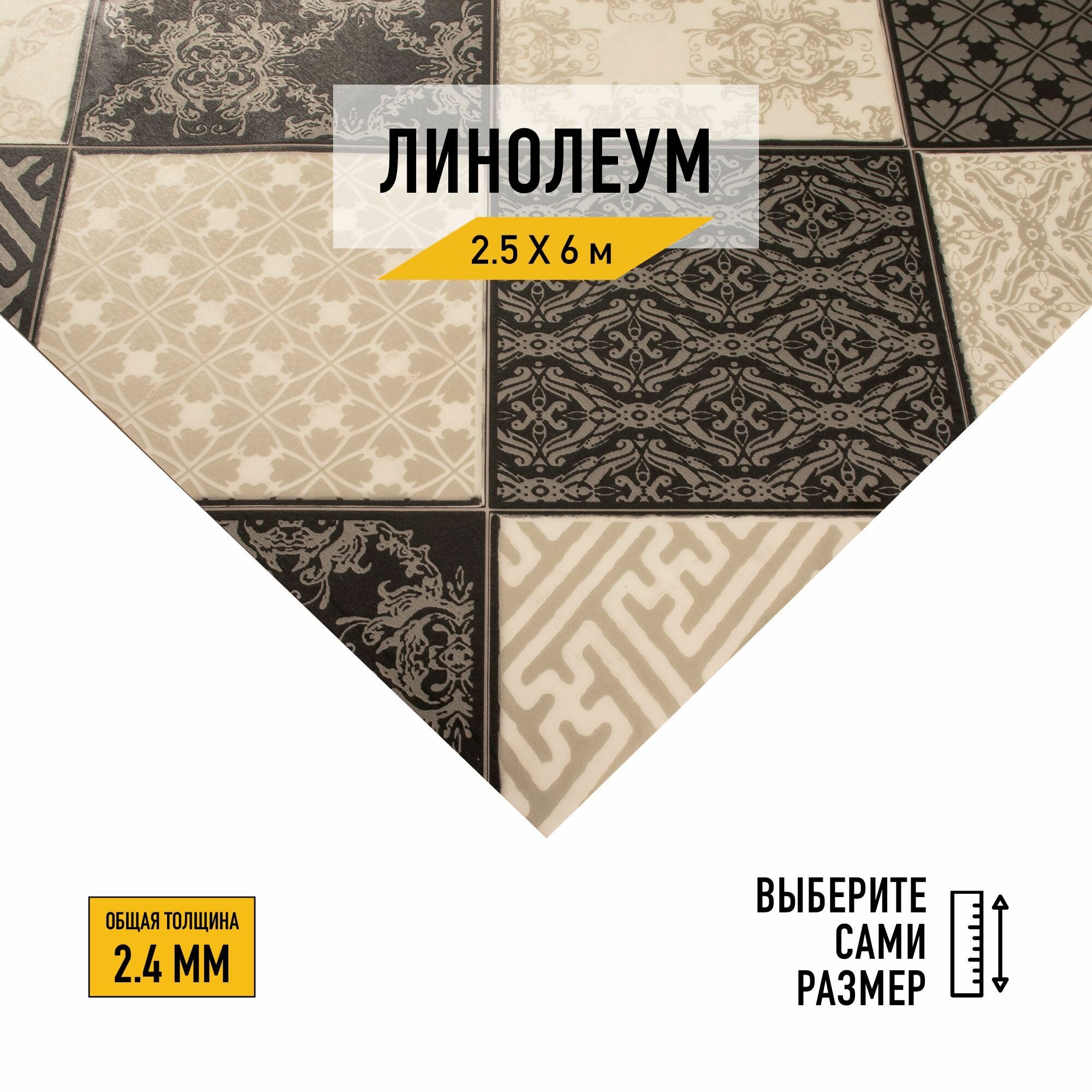 10 цен на Линолеум напольный на отрез Juteks, коллекции Strong Plus, "Chess 4_990D". Полукоммерческий линолеум 2,5х6 для пола в рулоне 23, 33, 42 класса