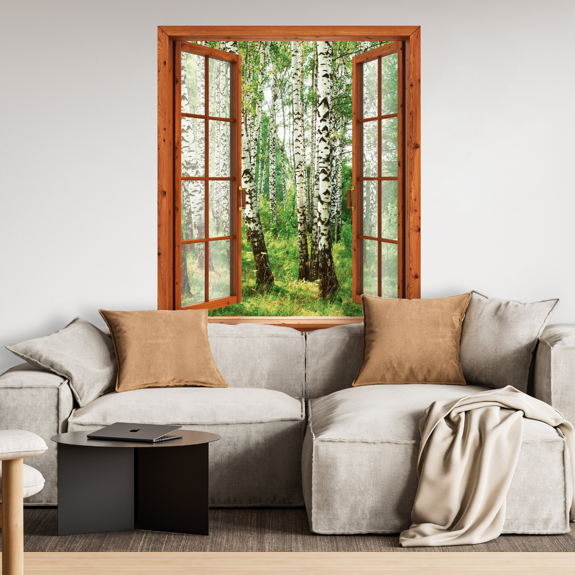 Фотообои Postermarket "Окно в берёзовую рощу" бумажные, 119х140 см информация: